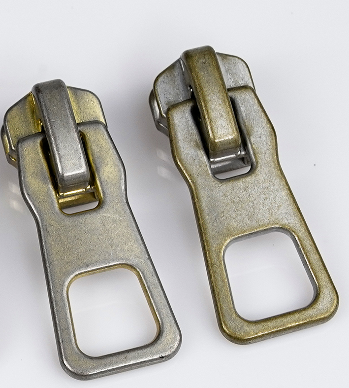 3、 我司拉头的表面处理工艺主要有喷漆和电镀两种。 喷漆产品的颜色可以根据YKK色卡、SBS色卡或Pantone色卡进行选择。电镀产品的镀种主要有:镀金、抛光黄金、黄铜、红铜、白铜、白枪、白铜镀黑镍、黄铜镀黑镍、镀白铜、亮白金、镀白金、古铜、黑古铜等。客户可以根据不同的环保要求进行镀种的选择。